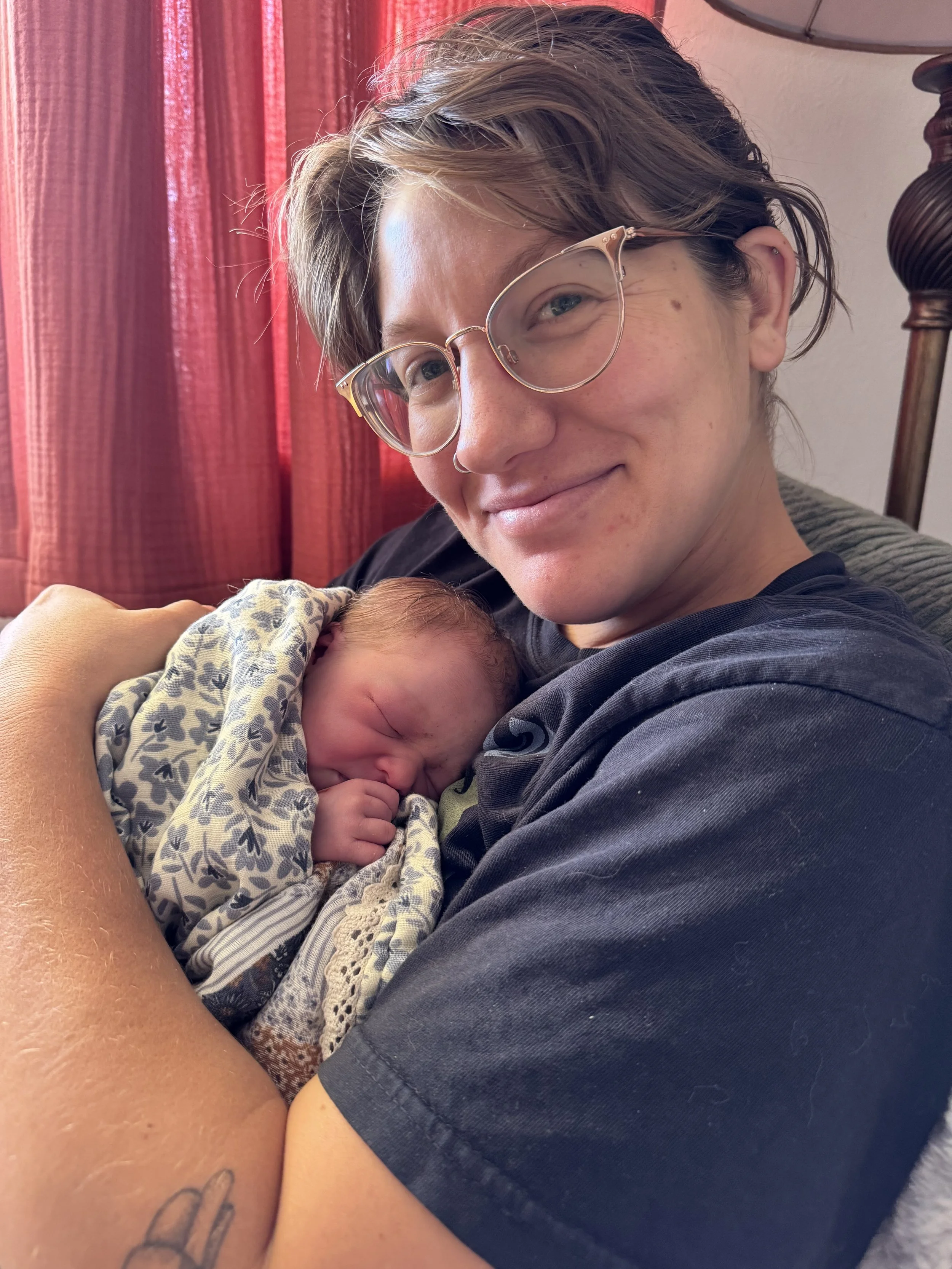 While it was one of the most challenging experiences of my life, it was also maybe the most empowering and beautiful thing I've ever done as well. I had prodromal labor starting Wednesday, and went into early labor in the night on Thursday going into Friday. I labored all day, my midwife performed craniosacral therapy which significantly calmed my body on Friday afternoon and let me move through the contractions without tensing the rest of my body, and was in active labor by Friday afternoon. One of the coolest parts to me was late in active labor how blissed out I felt in between contractions. By early morning Saturday, I was laying on my side and falling asleep/in a dreamlike state between intense contractions. I actually had my body ready birth packet next to me while laboring and referenced it multiple times to switch positions. While most of it was totally intuitive, sometimes the pain overtook being able to find a position in the moment that felt comfortable. My entire labor vibe was trying different positions, movement, swaying, walking, and making noise through each contraction (besides when I rested!)